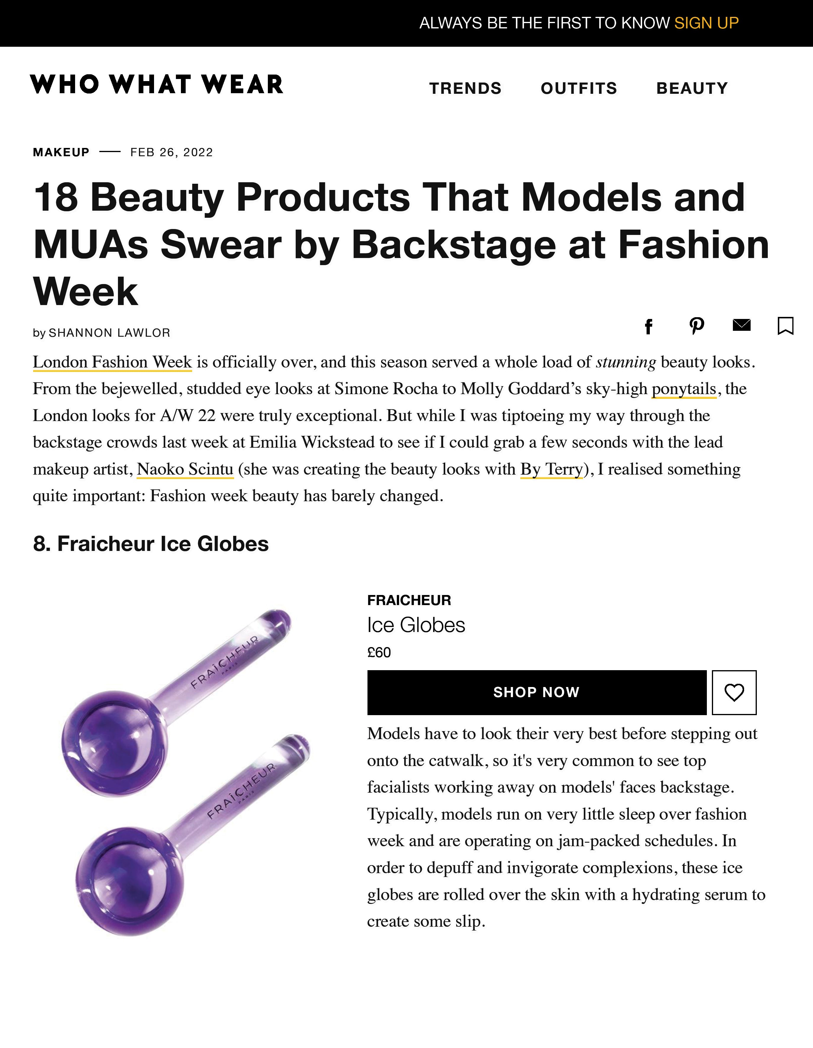 “My favorite way to de-puff on the fly: Fraîcheur Ice Globes”