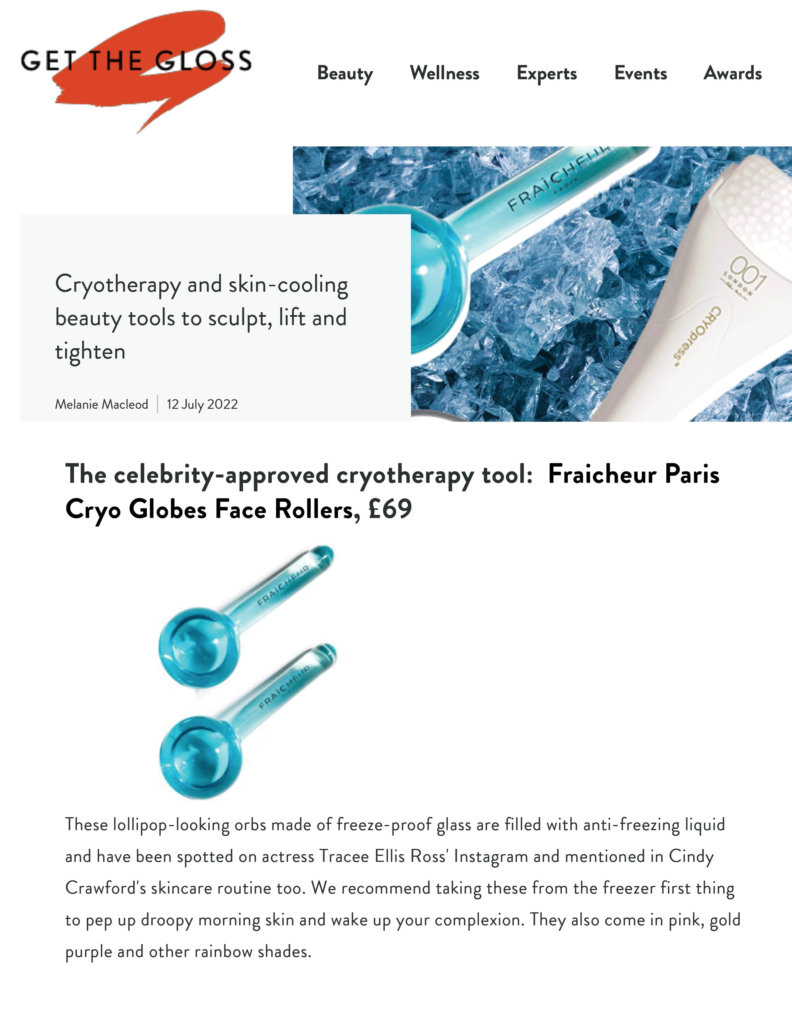 "These antifreeze-filled glass rollers come up again and again as a cryo beauty tool favourite among experts."