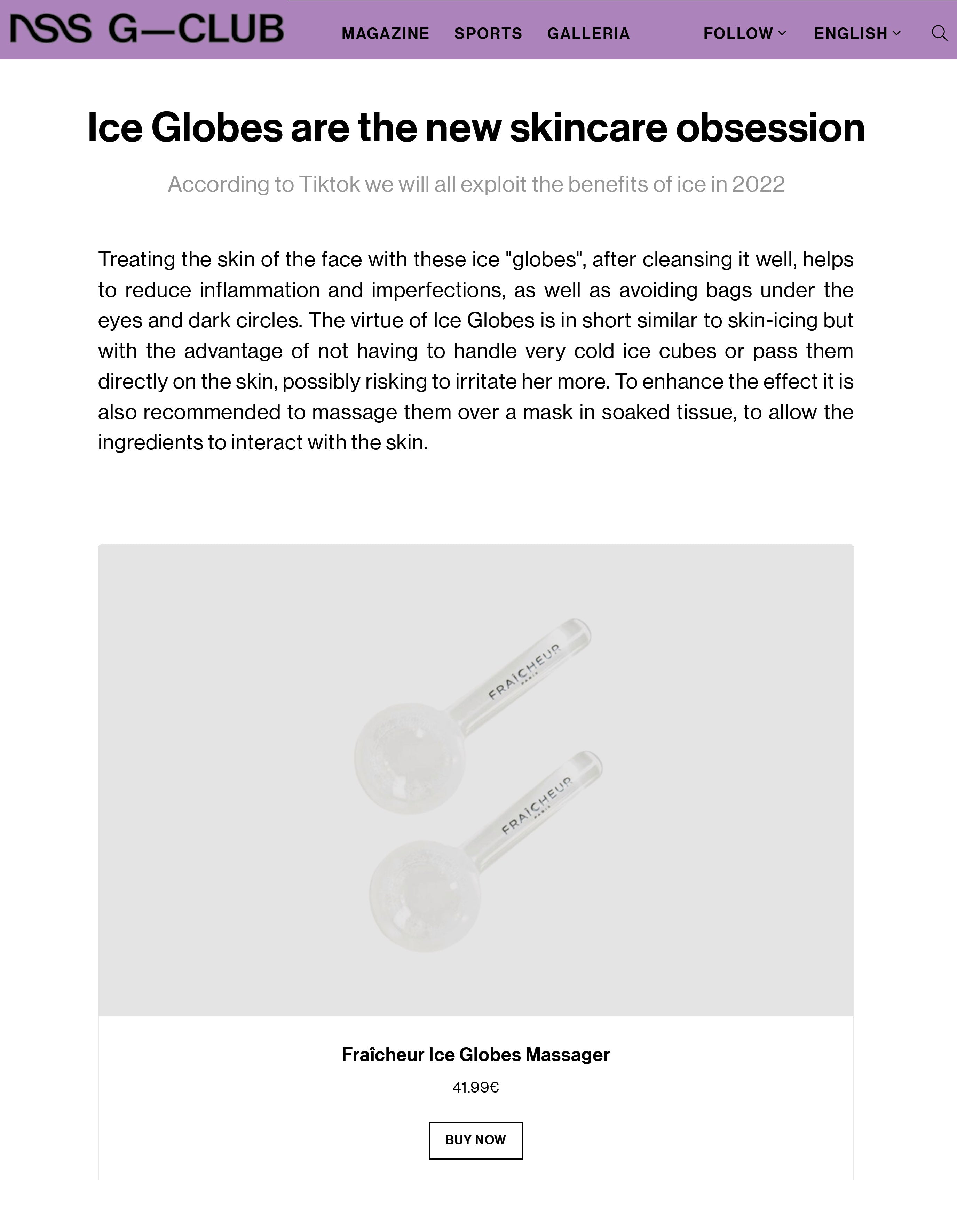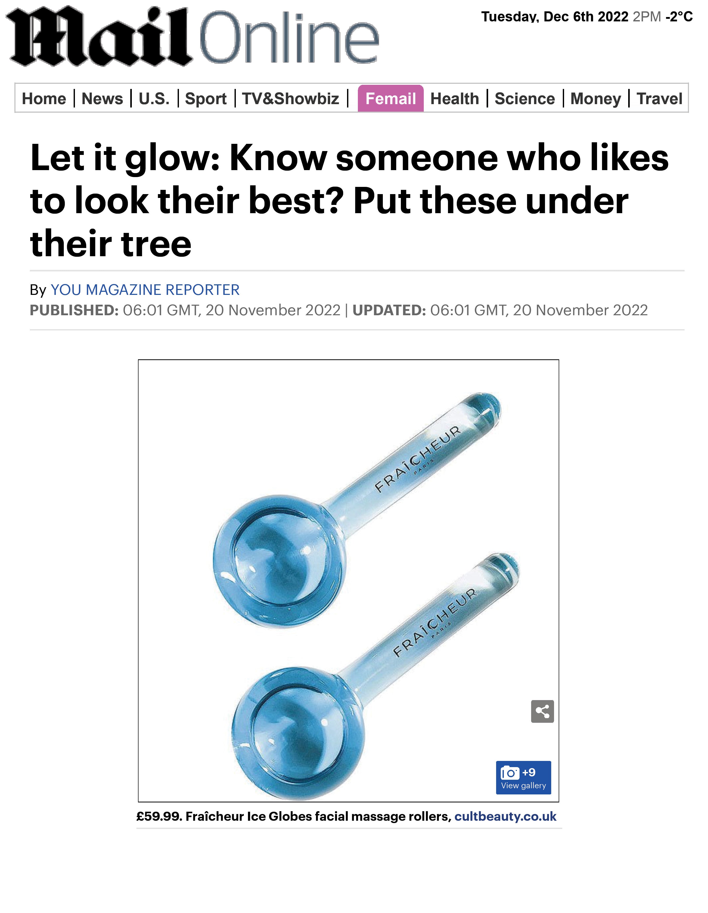 "The world's #1 newspaper website says Fraîcheur ice globes should be under beauty lover's Christmas tree this year!"