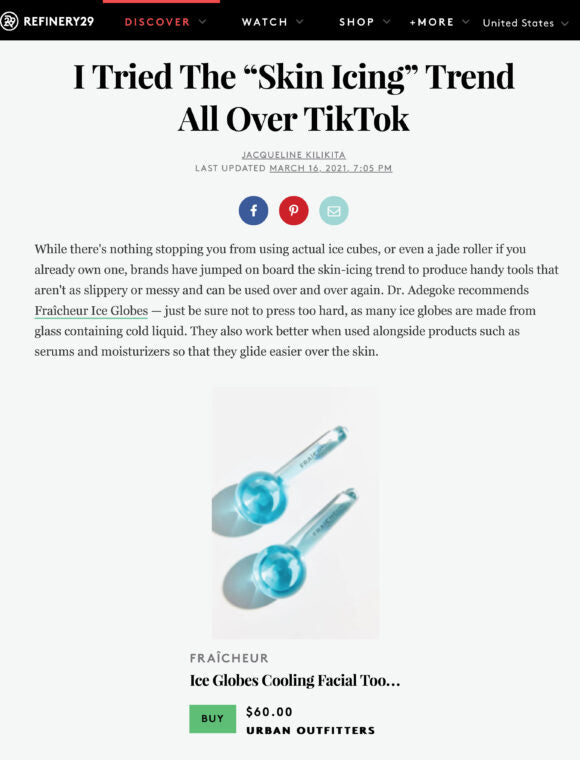 "Dr. Adegoke, aesthetics doctor and founder of Adegoke Wellness Clinic, recommends Fraîcheur Ice Globes."