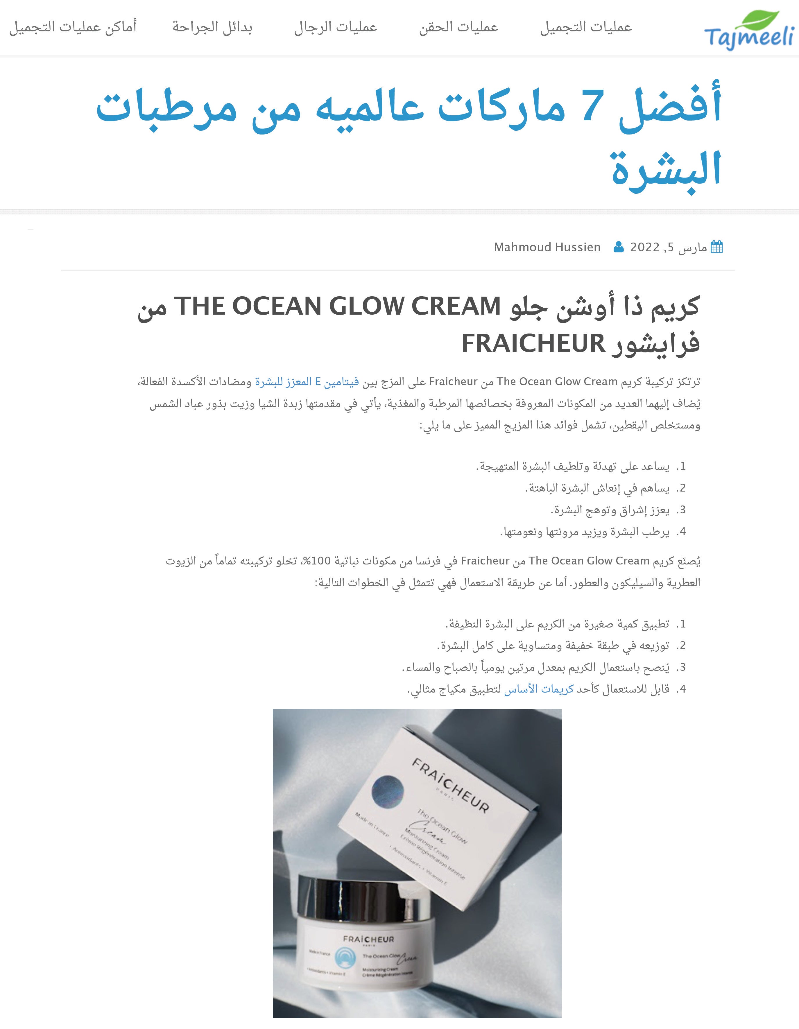 "Fraîcheur's The Ocean Glow Cream is formulated with a blend of skin-boosting vitamin E and potent antioxidants"