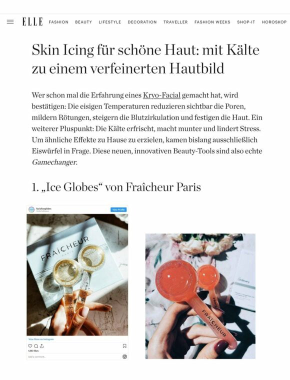 "Stimulate blood circulation, eliminate swelling and reddening of the skin, refine pores or refresh the skin: Fraîcheur Paris Ice Globes make all of this possible."